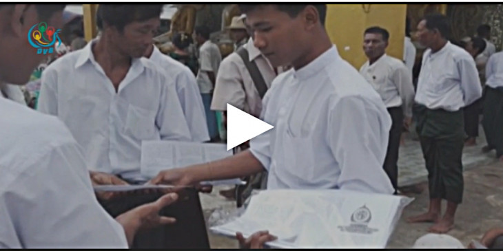 ေဒၚေအာင္ဆန္းစုၾကည္နဲ႔ အမ်ဳိးသားဒီမုိကေရစီအဖြဲခ်ဳပ္ (အန္အယ္လ္ဒီ)ပါတီကို မေရြးခ်ယ္ဖို႔ ေရးသားထားတဲ့ လက္ကမ္းစာေစာင္ေတြကို နတ္စင္တစ္ရာဆရာေတာ္ နဲ႔ ျပည္ခိုင္ၿဖိဳးပါတီဝင္ဝန္ႀကီးေတြရဲ႕စတုုဒီသာအလွဴမွာ အမည္မသိလူတစုက ျဖန္႔ေဝခဲ့ပါတယ္။