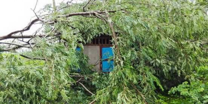 ပဲဲခူးတုိင္း၊ ဇီးကုန္း္ၿမိဳ႕နယ္ ကၽြဲတဲရြာမွာ ေလဆင္ႏွာေမာင္း ၀င္ေရာက္္တုိက္ခတ္သြားၿပီးေနာက္ အပ်က္အစီး ျမင္ကြင္း။