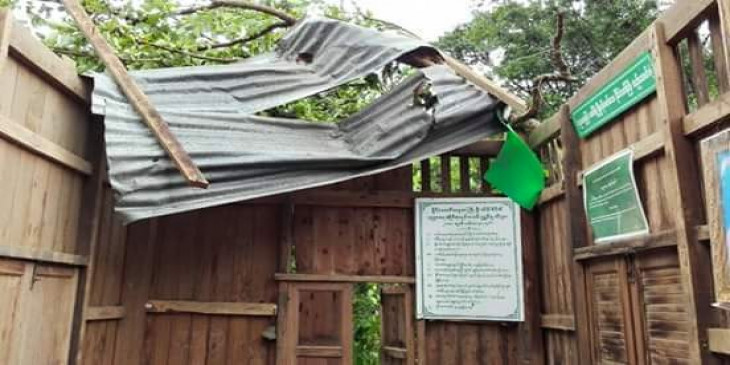 ပဲဲခူးတုိင္း၊ ဇီးကုန္း္ၿမိဳ႕နယ္ ကၽြဲတဲရြာမွာ ေလဆင္ႏွာေမာင္း ၀င္ေရာက္္တုိက္ခတ္သြားၿပီးေနာက္ အပ်က္အစီး ျမင္ကြင္း။