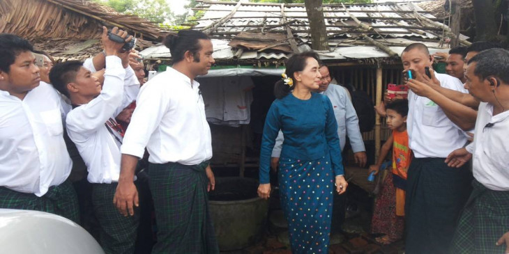အမ်ဳိးသားဒီမုိကေရစီအဖြဲ႕ခ်ဳပ္ ဥကၠ႒ ေဒၚေအာင္ဆန္းစုၾကည္နဲ႔ အိန္ဂ်လီနာဂ်ဳိလီတုိ႔ဟာ လိႈင္သာၿမိဳ႕နယ္