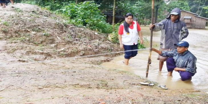 ဧရာ၀တီ ျမစ္ေရျမင့္တက္မႈေၾကာင့္ ဟသၤာတ ေရႀကီး (ဓာတ္ပုံ)