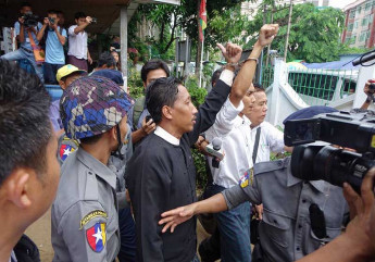 ဖမ္းဆီးခံေက်ာင္းသားမ်ား သာယာ၀တီ႐ုံးထုတ္ ျမင္ကြင္း (ဓာတ္ပုံ)