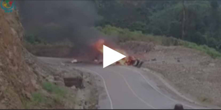 ျမ၀တီ-ေကာ့ကရိတ္လမ္းသစ္တြင္ ဂတ္စ္အိုးမ်ားတင္ေဆာင္လာသည့္ ၁၂ ဘီးယာဥ္ ေပါက္ကဲြ