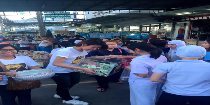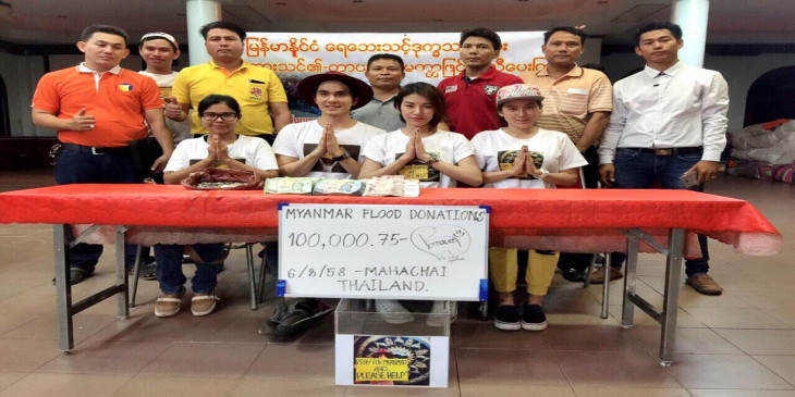 ကေယာက္ ကရာဗီဟာ စမြတ္စခြန္ခ႐ုိင္ မဟာခ်ိဳင္အေျခစိုက္ ထိုင္းႏိုင္ငံေရာက္ ျမန္မာတိုင္းရင္းသားမ်ား ေရေဘးကူညီေရးအဖြဲ႔နဲ႔အတူ ၾသဂုတ္ ၅ ရက္ေန႔က မဟာခ်ိဳင္ၿမိဳ႕တြင္းမွာ အလႉေငြေတြ လိုက္လံေကာက္ခံခဲ့ၿပီး ရရွိေငြေပါင္း ဘတ္ ၁ သိန္းနဲ႔ ၇၅ ျပားကို သူတို႔အဖြဲ႔ထံ ေပးအပ္လႉဒါန္းခဲ့တယ္လို႔ အဖြဲ႔ရဲ႕ ျပန္ၾကားေရး တာ၀န္ခံ ကိုရဲမင္းက ဒီဗြီဘီကို ေျပာပါတယ္။