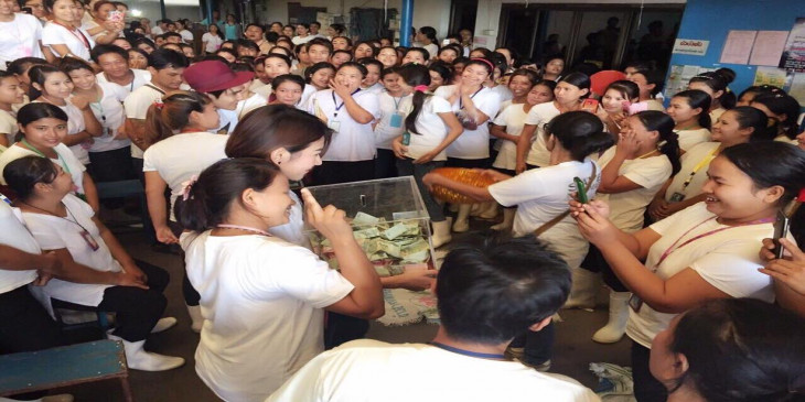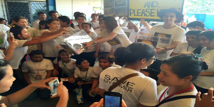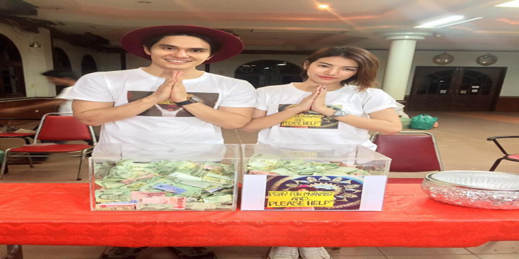 ထိုင္းႏိုင္ငံေရာက္ ျမန္မာအလုပ္သမားနဲ႔ ထိုင္းမိန္းကေလးတဦးတို႔ အခ်စ္ဇာတ္လမ္းအေၾကာင္း ႐ုိက္ကူးထားတဲ့ Myanmar in Love Bangkok ဇာတ္ကားက အဓိက သ႐ုုပ္ေဆာင္မင္းသမီး ကေယာက္ ကရာဗီ ဖိမ္းဆုခ္ဟာ ျမန္မာႏိုင္ငံက ေရေဘးဒုကၡသည္ေတြအတြက္ အလွဴေငြ လိုက္လံေကာက္ခံေပးေနပါတယ္။