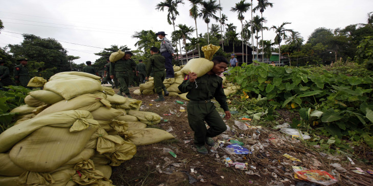 ေညာင္တုုန္းၿမဳိ႕ ေရနစ္ျမဳပ္ေနမႈႏွင့္သဲအိတ္ခ်မႈ ျမင္ကြင္း