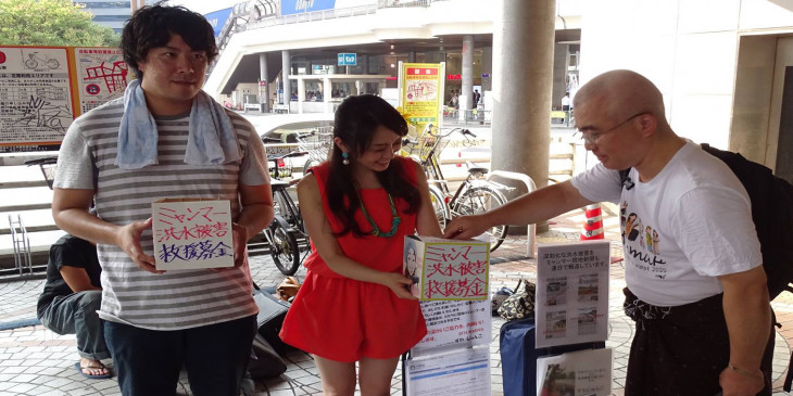 ဂ်ပန္အဆိုုေတာ္ ဂ်ြန္ကိုုဆုု၀ါနဲ ့ဂ်ပန္လူငယ္႐ုပ္ရွင္ဒါ႐ုိက္တာ အကီအိုု ဖူဂ်ီမိုုတိုု တိုု႔က ျမန္မာေရေဘးသင့္ ျပည္သူေတြကိုု လႉဒါန္းဖို႔အတြက္ တုိက်ိဳၿမိဳ႕က လူစည္ကားတဲ့ ေနရာေတြမွာ အလႉေငြ ေကာက္ခံေနပါတယ္။