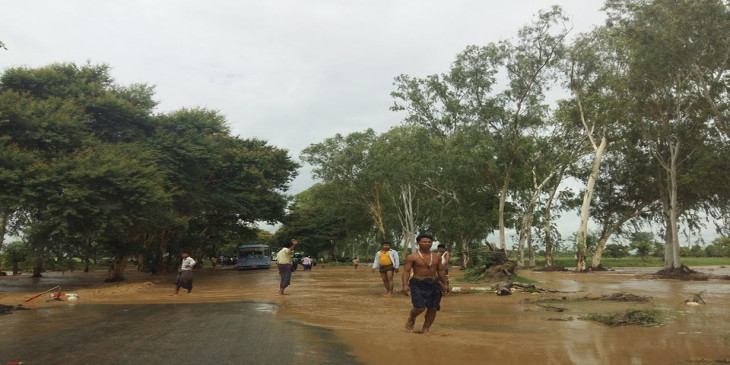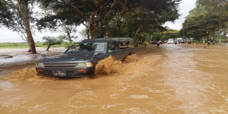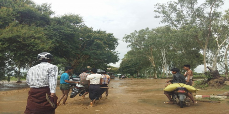 ျမင္းမူၿမိဳ႕ႏွင့္ မံုရြာၿမိဳ႕ၾကား ကားလမ္းေရေက်ာ္ေနမႈ ျမင္ကြင္း (ဓာတ္ပုံ)