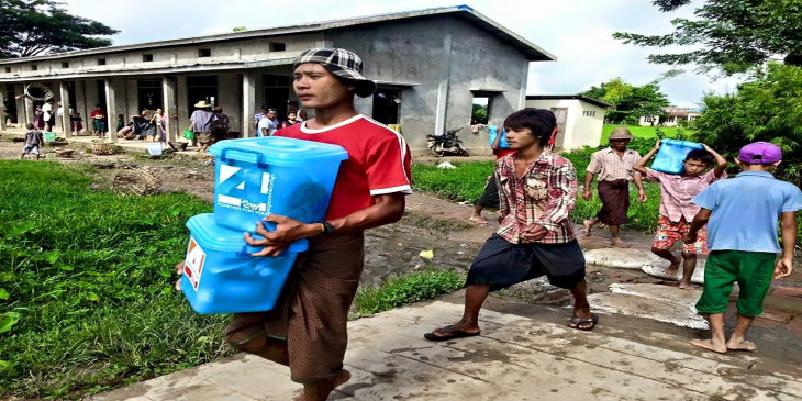 ဟသၤာတၿမိဳ႕နယ္မွာ ဧရာဝတီျမစ္ေရျမင့္တက္မႈေၾကာင့္ ေရနစ္ျမဳပ္တဲ့ ေက်းရြာအုပ္စု ၂၂ စု လူဦးေရ ၄၂၁၅၁ ဦးရွိခဲ့ရာ ကယ္ဆယ္ေရးစခန္းေပါင္း ၂၇ ခု ဖြင့္လွစ္ခဲ့ရၿပီး သကၠယ္ျပင္၊ ျခင္ဘို႔။ ပ်ဥ္းမေခ်ာင္း။ ၿမိဳ႕ကြင္း။ စစ္ကုန္း ေက်းရြာအုပ္စုမ်ားရွိ ဖြင့္လွစ္ထားတဲ့ ေရေဘးသင့္ျပည္သူေတြ ေနရပ္ျပန္လည္ေနထိုင္ရန္ ေထာက္ပံံ့ပစၥည္းေတြနဲ႔အတူ ျပန္သြားၾကပါတယ္။