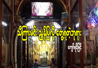 မၾကာခင္မွာ ၾကာကန္ႀကီးကုိ ေတြ႔ရတယ္။ ၾကာဖက္စိမ္းစိမ္းေတြၾကားက ပန္းေရာင္ၾကာပြင့္ႀကီးေတြ ထုိးထြက္ေနတယ္။ ေလအသြဲ႔မွာ ၾကာပြင့္ႀကီးေတြ ယိမ္းႏဲြ႔ေနၾကတယ္။ ၾကာရနံ႔က သင္းပ်ံ႕ပါတယ္။ ၾကာကန္သာ ႀကီးထဲမွာ ေရႊေရာင္ပ၀င္းေနတဲ႔ ကရ၀ိတ္ ၂ ေကာင္နဲ႔ ေဖာင္ႀကီးတခုလည္း ရွိတယ္။