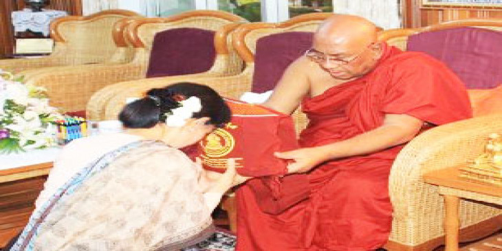 အမ်ိုးသားဒီမိုကေရစီအဖြဲ့ခ်ဳပ္ အေထြေထြအတြင္းေရးမႉး ေဒၚေအာင္ဆန္းစုၾကည္က သဲကုန္း သပိတ္အိုင္ေတာရ သီတဂူဆရာေတာ္ ေဒါက္တာအ႐ွင္ဥာဏိဿရကို သြားေရာက္ ဂါရဝျပု ဖူးေျမာ္ၾကည္ညိုခဲ့ပါတယ္။