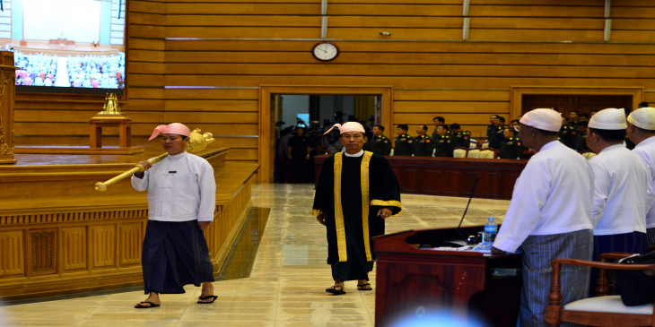 “ဒီအဆုိတင္လုိက္လုိ႔ ဒီလႊတ္ေတာ္ႀကီးကုိ ရပ္နားေပးမွာမဟုတ္ဘူးဆုိတာ နားလည္ဖုိ႔လုိတယ္။ သုိ႔ရာတြင္ မိမိတုိ႔ဟာ မိမိတုိ႔ ေဒသမွာ ေရေဘးကာကြယ္ေရး၊ ျပန္လည္ထူေထာင္ေရးလုပ္ဖုိ႔ လုိအပ္တယ္လုိ႔ ယူဆတယ္ဆုိရင္ ခြင့္ယူသြားလုိ႔ရပါတယ္။ ထုိနည္းတူစြာပဲ လာမယ့္ ေရြးေကာက္ပြဲမွာ မိမိတုိ႔က လႊတ္ေတာ္ကုိယ္စားလွယ္သြားေရာက္ၿပီးေတာ့ ကုိယ္စားလွယ္ ေလာင္းအျဖစ္ စာရင္းတင္သြင္းထားလုိ႔ရွိရင္ ေနရာေတြမွာ သြားေရာက္ဖုိ႔ လုိတယ္ဆုိလုိ႔ရွိရင္ ခြင့္ယူသြားလုိ႔ရတယ္။ အဲေတာ့ ျပန္ၿပီးေတာ့ သုံးသပ္တင္ျပ ရမယ္ဆုိရင္ အခုတင္ျပခ်က္ ႀကိဳဆုိတယ္။ သုိ႔ရာတြင္ ဥကၠ႒တေယာက္အေနနဲ႔ နာယက တေယာက္အေနနဲ႔ မိမိတုိ႔ ႏုိင္ငံႏွင့္ႏုိင္ငံသား အက်ဳိးစီးပြားအတြက္ ေဆာင္ရြက္ရမယ့္ ဥပေဒမ်ား၊ ထုိနည္းတူစြာပဲ လႊတ္ေတာ္ဆုိင္ရာ လုပ္ငန္းတာ၀န္မ်ား ဦးစားေပးၿပီးေတာ့ အျမန္ဆုံး ၿပီးေျမာက္ေအာင္ ေဆာင္ရြက္သြားမယ္ဆုိတဲ့အေၾကာင္း တင္ျပတဲ့တင္ျပခ်က္၊ တင္ျပသူမ်ားနဲ႔ ေထာက္ခံသူမ်ား၊ လႊတ္ေတာ္ကုိယ္စားလွယ္မ်ားကေနတဆင့္ တုိင္းျပည္ကုိ သိေပးတင္ျပ အပ္ပါတယ္။ ”