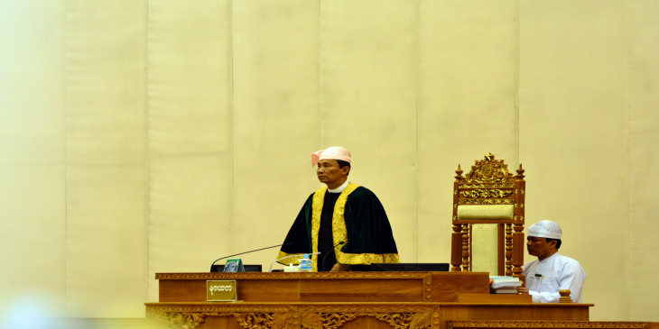 “လက္ရွိ အေျခအေနမွာ က်ေနာ္ ျပည္ေထာင္စုလႊတ္ေတာ္နာယက တာ၀န္ အလွည့္က် ထမ္းေဆာင္ေနတဲ့ ျပည္သူ႔လႊတ္ေတာ္ဥကၠ႒ကိုပါ ဖြဲ႕စည္းပံု အေျခခံဥပေဒပါ ျပဌာန္းခ်က္ကို အသံုးျပဳၿပီး တိုင္တန္းထားေၾကာင္း သိရွိရပါတယ္။ ဒါ့ေၾကာင့္ ဒီအစည္းအေ၀းအၿပီးမွာ ဥပေဒၾကမ္းပူးေပါင္းေကာ္မတီနဲ႔ လႊတ္ေတာ္အသီးသီးရွိ ႏုိင္ငံေရးပါတီ အသီးသီး ကိုယ္စားလွယ္မ်ား ေတြ႔ဆံုေဆြးေႏြးပါ။ ေဆြးေႏြးညိႇႏိႈင္းမႈက ရရွိတဲ့ အေျခအေနကို ဥပေဒ ျပဌာန္းႏိုင္ေရးအတြက္သာ စိစစ္ေလ့လာၿပီး ဥပေဒၾကမ္း ပူးေပါင္းေဆာင္ရြက္မႈ ပူးေပါင္း ေကာ္မတီရဲ႕အစီရင္ခံစာကို ၂၀ရက္ ၈ လ ၂၀၁၅ ၾကာသပေတးေန႔ ထက္ေနာက္မက်ေစပဲ လႊတ္ေတာ္သို႔ ထပ္မံတင္သြင္းၿပီး က်င္းပဆဲ လႊတ္ေတာ္အစည္းအေ၀းမွာ ဒီဥပေဒၾကမ္းကို လႊတ္ေတာ္က အတည္ျပဳႏုိင္ေရးစီမံေဆာင္ရြက္သြားမည္”လို႔ ေျပာပါတယ္။