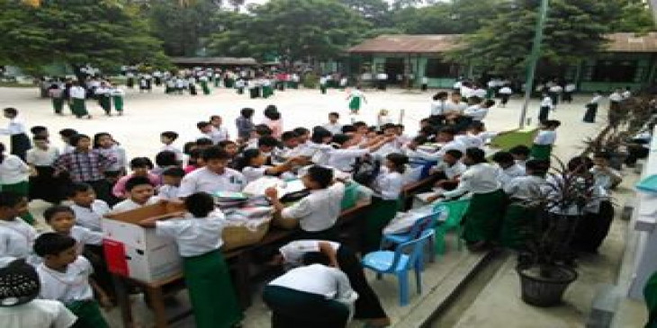 ေရေဘးသင့္ေက်ာင္းမ်ားအတြက္ သင္ေထာက္ကူပစၥည္းမ်ား လႉဒါန္း (ဓာတ္ပံု)