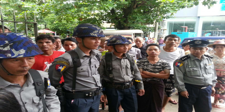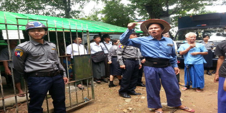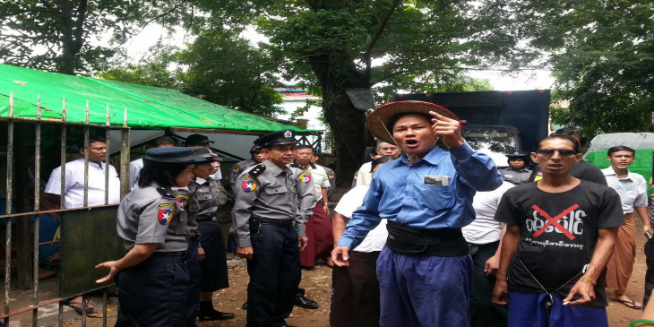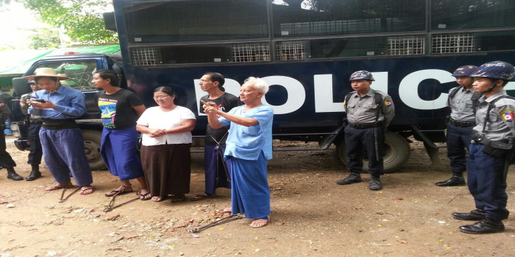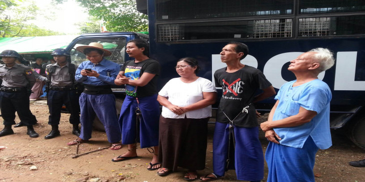ရန္ကုန္ၿမိဳ႕ တရုတ္သံရုံးေရွ႕မွာ ဆႏၵျပပြဲအၿပီး ဖမ္းဆီးတရားစြဲခံၾကရတဲ့ ႏိုင္ငံေရးတက္ႂကြ လႈပ္ရွားသူေတြကို ျဖတ္သန္းသြားတဲ့ ၿမိဳ႕နယ္အလိုက္ ပုဒ္မ ၁၈ ျဖင့္ တရားစြဲဆိုခံရတဲ့ ကိုေနမ်ိဳးဇင္၊ ေနာ္အုန္းလွ၊ ကိုတင္ထြဋ္ပိုင္ အပါအ၀င္ ၅ ဦးကို အလံုၿမိဳ႕နယ္ တရားရံုးမွာ ဒီေန႔ ၾသဂုတ္လ ၂၀ ရက္ေန႔ အမိန္႔ခ်မွာ ျဖစ္ပါတယ္။
