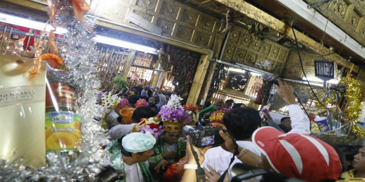 မႏၱေလးတိုင္းေဒသႀကီး မတၱရာၿမိဳ႕နယ္ ႏွစ္စဥ္ဝါေခါင္လဆန္း ၈ ရက္ေန႔မွာ က်င္းပတဲ့ ေတာင္ျပံဳးပြဲမွာ ေတြ႔ရတဲ့ နတ္ညီလာခံျမင္ကြင္းမ်ား