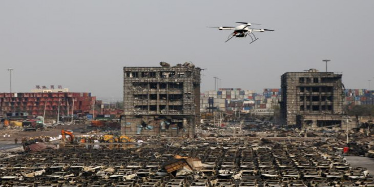 တီယန္္က်င္း ကုန္ေလွာင္႐ုံ ေပါက္ကြဲမႈျဖစ္ၿပီးေနာက္ အပ်က္အစီးျမင္ကြင္း။ (ဓာတ္ပုံ - ႐ုိက္တာ)