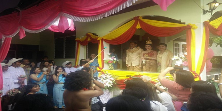 ထိုင္းႏိုင္ငံေတာင္ပိုင္း နခြန္းရာ့ခ်္ဆီမားခ႐ုိင္ ခ်အြတ္ၿမိဳ႕နယ္မွာ သတို႔သားျဖစ္သူက သတို႔သမီးျဖစ္သူကို ေတာတြင္းလူ႐ုိင္းလို၀တ္ၿပီး သတို႔သမီးတင္ေတာင္းကာ နန္းတြင္းပံုစံ မဂၤလာပြဲ က်င္းပခဲ့ပါတယ္။