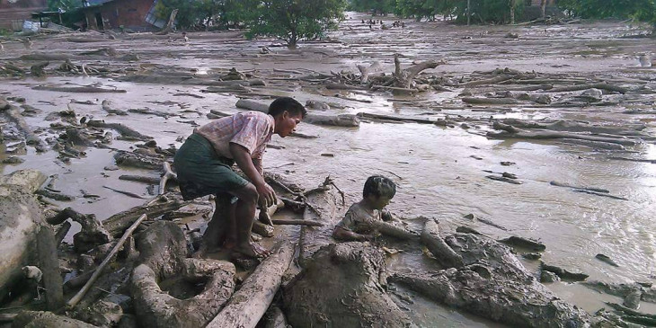 ရႊံ႕ႏြံေတြ ပါလာၿပီး ဟားခါးေလးေက်းရြာကုိ လႊမ္းသြားတာ (႐ုပ္သံ)