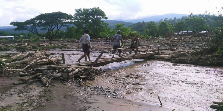 ၾသဂုတ္၂၈ ရက္ မနက္အေစာပိုင္းက မိုးႀကီးၿပီး ေတာင္ေပၚက သဘာ၀ေရကန္ ေရလွ်ံက်ိဳးေပါက္ခဲ့လို႔ ရႊံ႕ေရေတြ ဒလေဟာစီးဆင္းခဲ့ၿပီးတဲ့ေနာက္ ရြာကို ရႊံ႕ႏြံေတြ ဖံုးသြားခဲ့တာ ျဖစ္ပါတယ္။