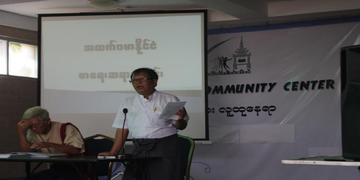 UBWA(1) အတြင္းေရးမွဴး ဆရာဆူးငွက္ ဖဲြ႔စည္းပုံစည္းမ်ဥ္း ရွင္းလင္းျပေနပုံ