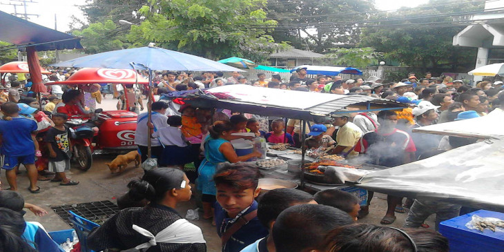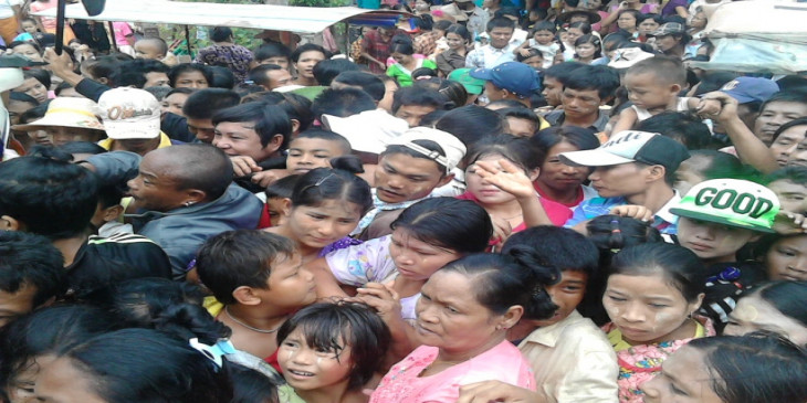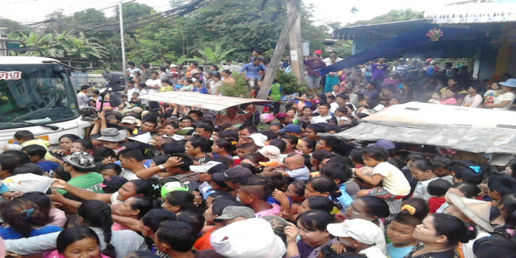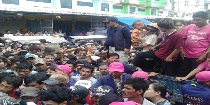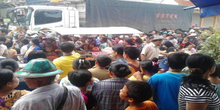 မနက္ ၈ နာရီကစၿပီး ေန႔လယ္ ၁၂ နာရီထိ ေရႊ႕ေျပာင္းျမန္မာအလုပ္သမားေတြ ထိုင္း တ႐ုတ္ဘုံေက်ာင္းမွာ စားနပ္ရိကၡာ ရရွိဖို႔အတြက္ လာေရာက္ခဲ့ၾကပါတယ္။