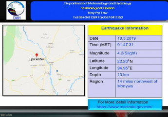 ဒီေန႔မနက္ ၈ နာရီခြဲအခ်ိန္မွာ ခ်င္းတြင္းျမစ္ေရဟာ မံု႐ြာၿမိဳ႕ရဲ စိုးရိမ္ေရအမွတ္ ၁၀၀၀ စင္တီမီတာ ေက်ာ္အထိ ေရာက္ရွိလာပါတယ္။