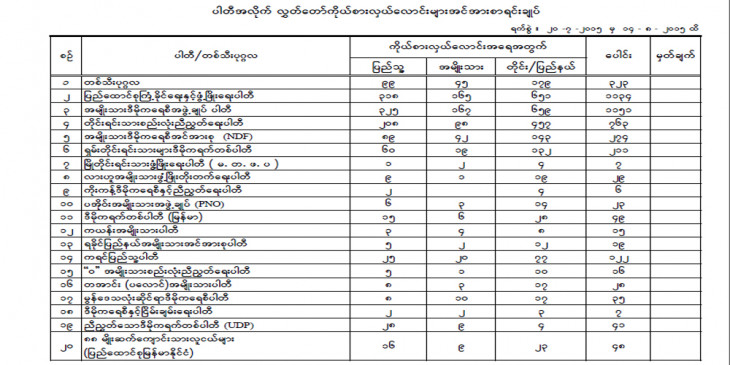 ေရြးေကာက္ပြဲ ၀င္ခြင့္ရ ကိုယ္စားလွယ္ေလာင္းမ်ားစာရင္း ေကာ္မရွင္ေၾကညာ