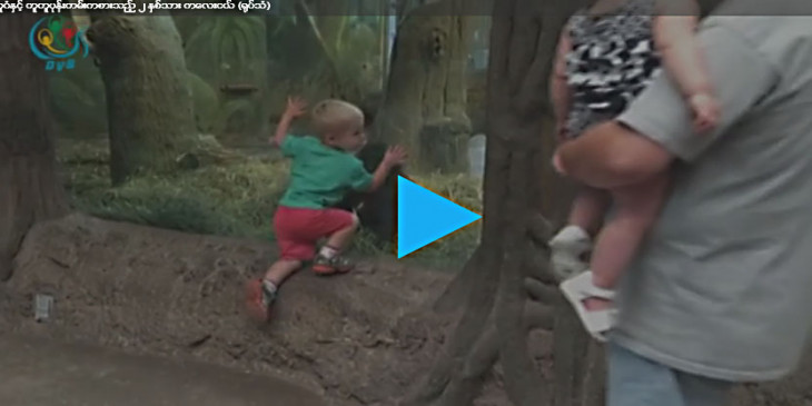မွန္နံရံေတြ ကာရံထားေပမယ့္လည္း ကေလးေလးက လူ၀ံနဲ႔ တူတူပူတမ္းကို ေပ်ာ္ရႊင္စြာ ကစားခဲ့ပါတယ္။