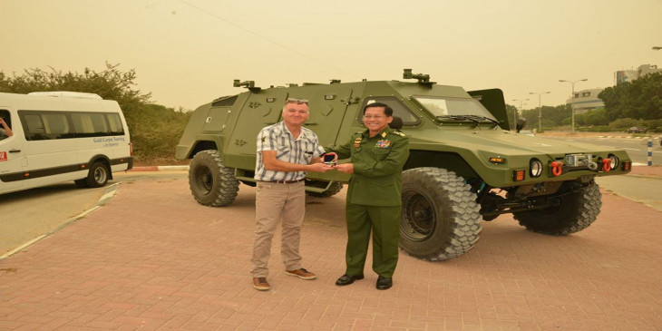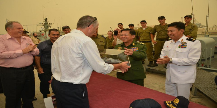 တပ္မေတာ္ကာကြယ္ေရးဦးစီးခ်ဳပ္ ဗုိလ္ခ်ဳပ္မႉးႀကီး မင္းေအာင္လႈိင္ ဦးေဆာင္တဲ့ ျမန္မာ့တပ္မေတာ္ ခ်စ္ၾကည္ေရး ကုိယ္စားလွယ္အဖြဲ႔ဟာ အစၥေရးႏုိင္ငံ အက္ရွ္ေဒါ့ (Ashdod) ၿမိဳ႕ရွိ ေရတပ္စခန္းဌာနခ်ဳပ္ (Ashdod Naval Base) ကုိ သြားေရာက္ေလ့လာစဥ္။