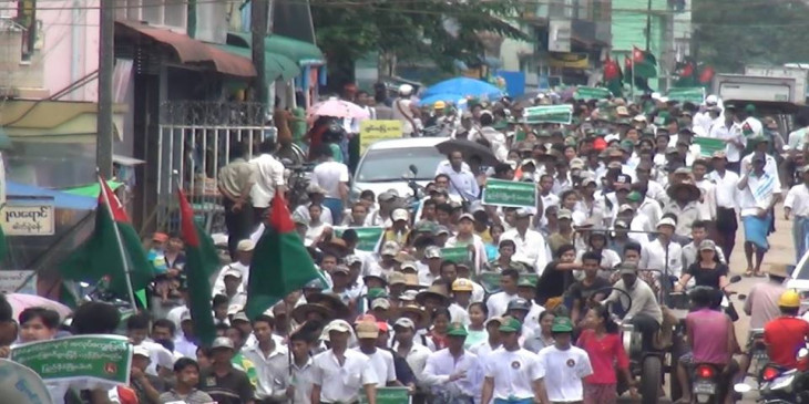 ျပည္ေထာင္စု ၾကံ့ခိုင္ေရးႏွင့္ ဖြံ႔ၿဖိဳးပါတီ ႀကိဳဆိုေထာက္ခံပြဲကို ေျမာင္းျမၿမိဳ႕မွာ စက္တင္ဘာလ ၁၈ ရက္ေန႔မွာ ျပဳလုပ္ခဲ့ပါတယ္။ ခြင့္ျပဳမိန္႔တင္ကာ အင္အား ၁ သိန္းေက်ာ္နဲ႔ ၿမိဳ႕တြင္းလွည့္လည္ အင္အားျပခဲ့တာ ျဖစ္ပါတယ္။