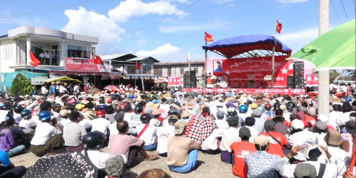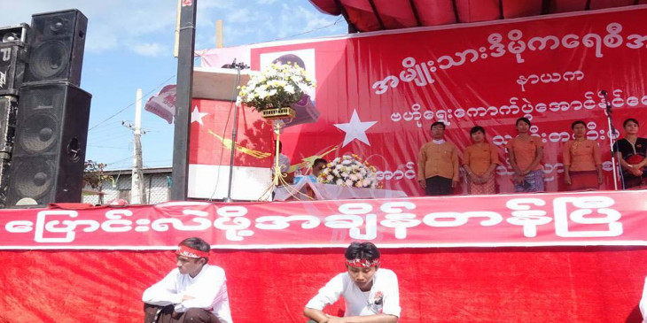 ပဲခူးတုိင္း ပန္းေတာင္းတြင္ အန္အယ္လ္ဒီက မဲဆြယ္စည္း႐ုံး (ဓာတ္ပံု)