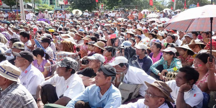 ပန္းေတာင္းၿမိဳ႕နယ္မွာ အမ်ဳိးသားဒီမိုကေရစီအဖြဲ႔ခ်ဳပ္ ကိုယ္စားျပဳၿပီး အမ်ဳိးသမီး ၃ ဦးနဲ႔ အမ်ဳိးသား ၁ ဦး ယွဥ္ၿပိဳင္ၾကမွာ ျဖစ္ၿပီး သူတုိ႔ေတြကုိ မဲထည့္ၾကဖုိ႔ ေဒသခံေတြကို တုိက္တြန္းေဟာေျပာခဲ႔ပါတယ္။