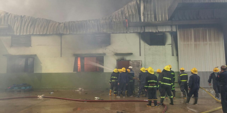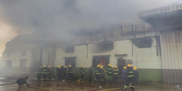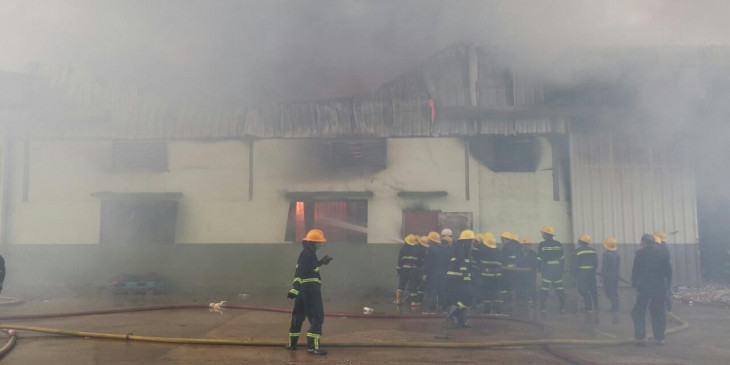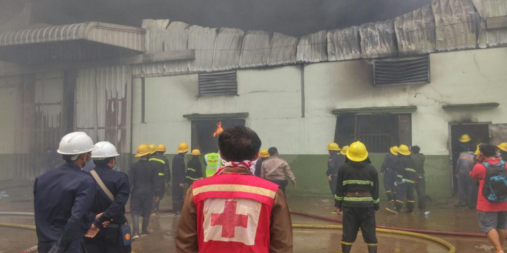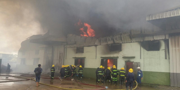 ဒီေန႔မနက္ ၇ နာရီခြဲေလာက္က မဂၤလာဒုံၿမိဳ႕နယ္ ေဇကမၻာဝင္း၊ R7၊ အမွတ္၂၈၉၊ ေရႊသန္းေက်ာ္ကုမၸဏီပိုင္ ကုိကာကုိလာ အခ်ိဳရည္ဂိုေထာင္မွာ မီးေလာင္မႈျဖစ္ပြားလုိ႔ Level 3 ယာဥ္အုပ္စုျဖင့္ ႀကိဳးစားၿငိမ္းသတ္ေနပါတယ္။