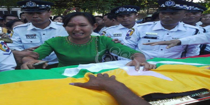 မႏၱေလးၿမိဳ႕ ေအာင္ေျမသာစံၿမိဳ႕နယ္ နန္းေရွ ၁၉ x ၆၆ လမ္းေထာင့္မွာ စက္တင္ဘာလ ၂၄ ရက္ေန႔ မနက္က ယာဥ္စည္းကမ္းထိန္းသိမ္းေရး ေဆာင္ရြက္ေနစဥ္ ဓားနဲ႔ ထိုးသတ္ခံရတဲ့ ယာဥ္ထိန္းရဲတပ္သားေက်ာ္ဇင္ဦးရဲ႕ စ်ာပနကို ဒီကေန႔ ညေနပိုင္းက ျပဳလုပ္ခဲ့ပါတယ္။