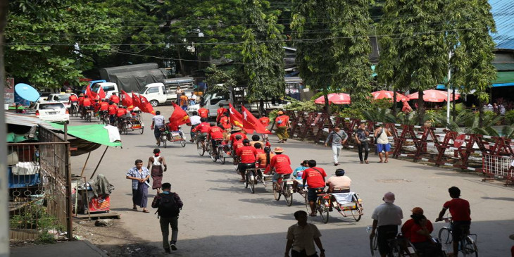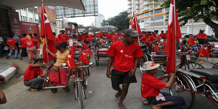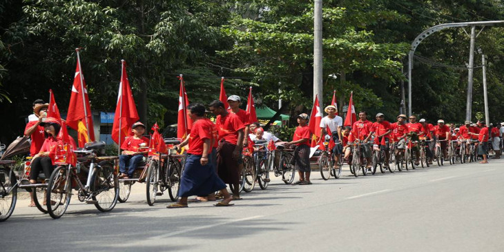 အမ်ဳိးသားဒီမုိကေရစီအဖြဲ႔ခ်ဳပ္ (အန္အယ္လ္ဒီ) ပါတီက မဂၤလာေတာင္ညြန္႔ၿမိဳ႕နယ္မွာ ေရြးေကာက္ပြဲေအာင္ႏိုင္ေရးကို ဆိုက္ကားအစီး ၂၅၀ ေက်ာ္နဲ႔ မဲဆြယ္ခဲ့ၾကပါတယ္။