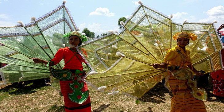 ေဒၚေအာင္ဆန္းစုၾကည္ကုိ ႐ုိးရာအကျဖင့္ ႏႈတ္ဆက္ေနစဥ္ (ဓာတ္ပုံ)