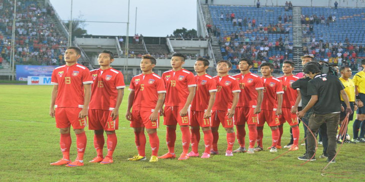 နယူးဇီလန္အသင္းႏွင့္ ေျခစမ္းပြဲ ယွဥ္ၿပိဳင္ကစားခဲ့သည့္ ျမန္မာ့လက္ေရြးစင္အသင္း။ (ဓာတ္ပုံ - အမ္အက္ဖ္အက္ဖ္)
