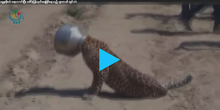 သတၱဳအုိးထဲ ေရေသာက္ၿပီး ေခါင္းျပန္ထုတ္မရျဖစ္ေနသည့္ က်ားသစ္ (႐ုပ္သံ)