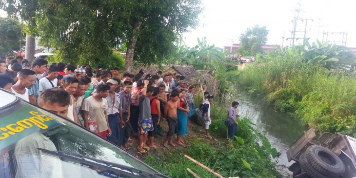 လႈိင္သာယာၿမိဳ႕နယ္ ဘုရာလမ္းမွတ္တိုင္ အနီးမွာ ဒီေန႔ မနက္ ၈နာရီက ခရီးသည္တင္ ၈၆ ဒိုင္နာကားနဲ႔ အိမ္စီးကားတစီးတိုက္မိၿပီး ခရီးသည္တင္ကား ေခ်ာက္ထဲက်သြားလုိ႔ လူ ၈ ဦး ဒဏ္ရာရသြားပါတယ္။