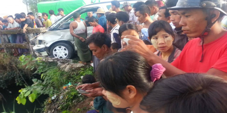 ခရီးသည္တင္ကား ႏွင့္ အိမ္စီးကား တုိက္မိ၊ လူ ၈ ဦး ဒဏ္ရာရ (သတင္းဓာတ္ပုံ)