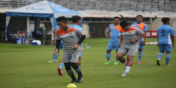 ျမန္မာ့လက္ေရြးစင္အသင္း ဘန္ေကာက္တြင္ ေလ့က်င့္ (သတင္းဓာတ္ပုံ)