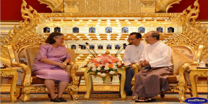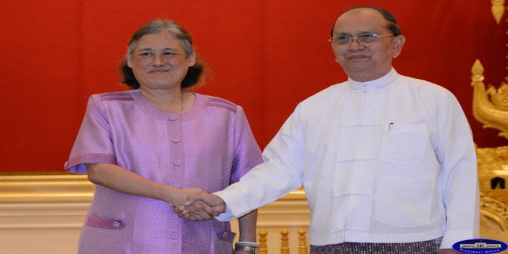 ျမန္မာႏိုင္ငံမွာ အလည္အပတ္ ေရာက္ရွိေနတဲ့ ထိုင္းဘုရင့္ သမီးေတာ္ မဟာခ်က္ကရီသီရိဒံုဟာ ေအာက္တိုဘာ ၅ ရက္ မနက္က ေနျပည္ေတာ္မွာ သမၼတ ဦးသိန္းစိန္နဲ႔ သြားေရာက္ ေတြ႔ဆံုေဆြးေႏြးပါတယ္။