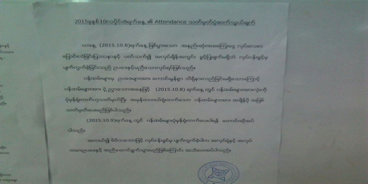 ပံုမွန္လစာထုတ္ေပးေလ့ရွိတဲ႔ ေအာက္တိုဘာ ၇ ရက္ေန႔က လစာေတြကို တိုးေပးၿပီလို႔ ေၾကညာစာကပ္ထားၿပီး တကယ္တမ္းသြားထုတ္ခ်ိန္မွေတာ့ အနည္းဆံုးအေျခခံလစာ ၁၀၈၀၀၀ က်ပ္ကေန ေနစရိတ္၊ စားစရိတ္အျဖစ္ ၂၄၀၀၀ က်ပ္ကို ျပန္ႏုတ္ထားတယ္လို႔ သူက ေျပာပါတယ္။