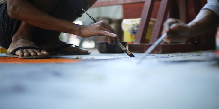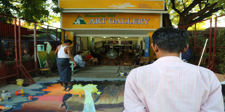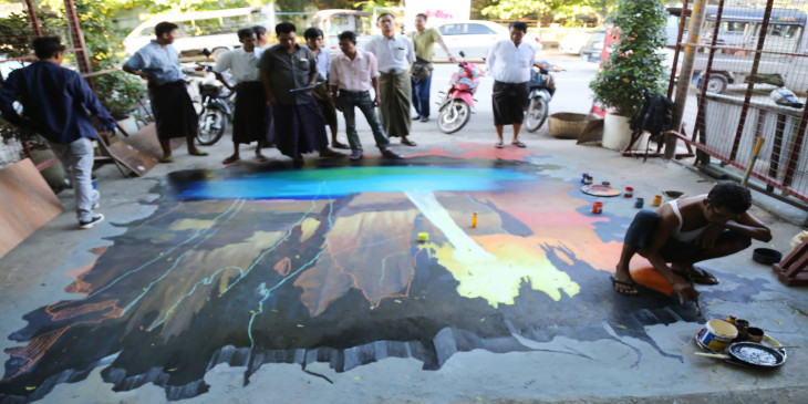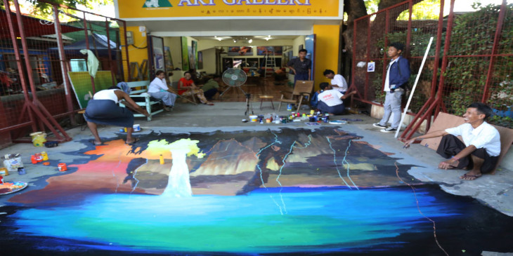 သုံးဘက္ျမင္ ႐ုပ္လုံးႂကြပန္းခ်ီ မႏၱေလးပန္းခ်ီဆရာမ်ား ပူးေပါင္းေရးဆြဲ (ဓာတ္ပုံ)