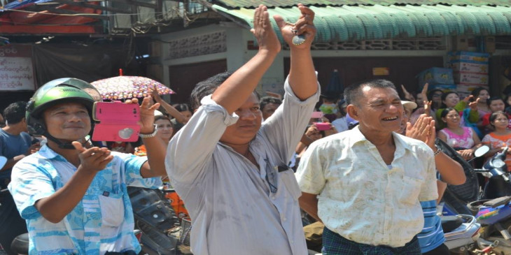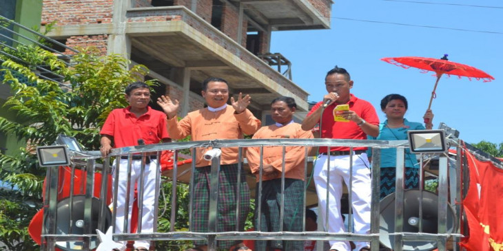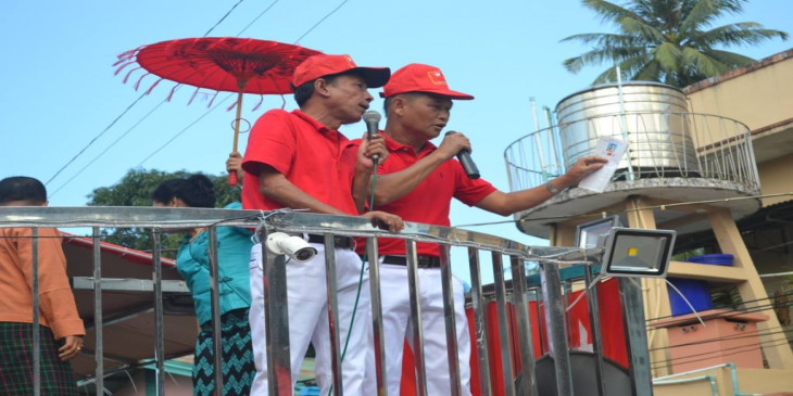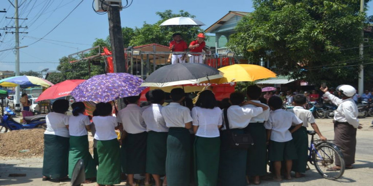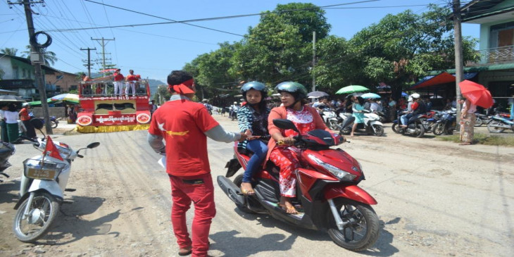 ခ်စ္ေခ်ာႏွင့္ပြမ္ပြမ္တုိ႔ ျပက္လံုးမ်ားျဖင့္ မဲဆြယ္ေနသည့္ ၿမိတ္အန္အယ္လ္ဒီ (ဓာတ္ပုံ)
