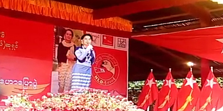 ေဒၚေအာင္ဆန္းစုၾကည္ဟာ ေရြးေကာက္ပြဲ ေအာင္ႏုိင္ေရး မဲဆြယ္စည္း႐ုံးေရး ခရီးစဥ္အျဖစ္ ေအာက္တုိဘာ ၁၆ ရက္ေန႔က စတင္ၿပီး ရခုိင္ျပည္နယ္ သံတြဲ၊ ေတာင္ကုတ္နဲ႔ ဂြၿမိဳ႕နယ္ေတြမွာ လွည့္လည္ေဟာေျပာစည္း႐ုံးေနတာပါ။