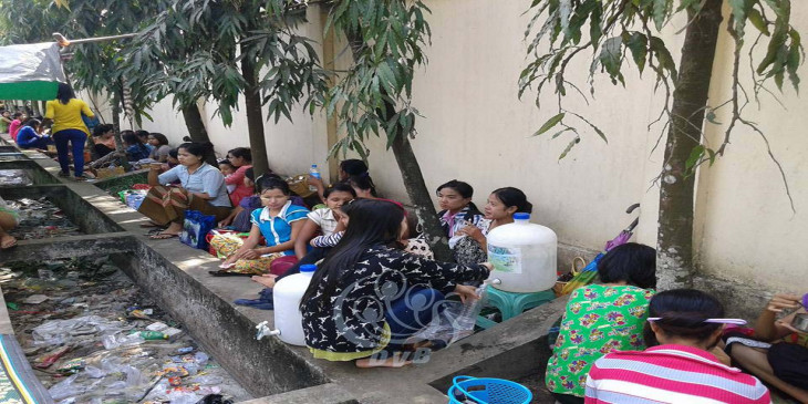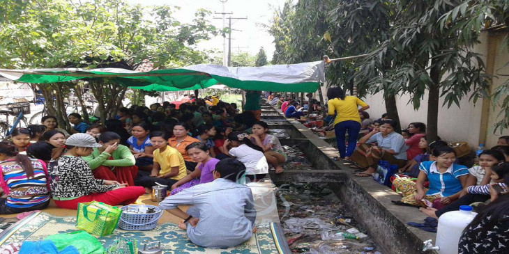 လုပ္အားညႇစ္ထုတ္ခိုင္းေစမႈေတြနဲ႔ အနည္းဆံုး အခေၾကးေငြ က်ပ္ ၃၆၀၀ မထုတ္ျပန္ခင္က ေပးထားတဲ့ အေျခခံ ခံစားခြင့္ေတြ ႐ုပ္သိမ္းခံလိုက္ရတာေတြေၾကာင့္ လႈိင္သာယာစက္မႈဇုန္ ၄ လပ္ကီး (Lucky) ဖိနပ္စက္႐ုံက အလုပ္သမားေတြ ဆႏၵေဖာ္ထုတ္ေနၾကပါတယ္။