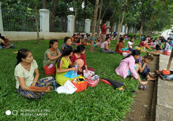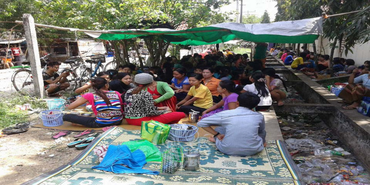 လႈိင္သာယာစက္မႈဇုန္ ဖိနပ္စက္႐ုံ အလုပ္သမားမ်ား ဆႏၵျပ (ဓာတ္ပုံ)