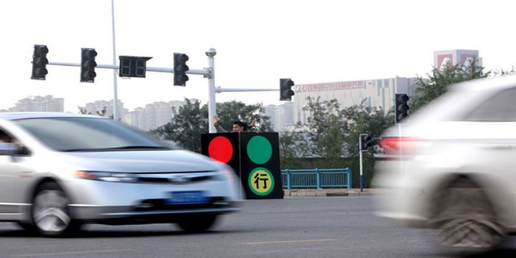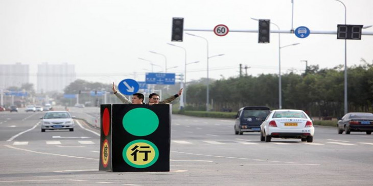 တ႐ုတ္ႏိုင္ငံ၊ ဟေဘးျပည္နယ္၊ ရွီက်ားေခ်ာင္ၿမိဳ႕က လမ္းမႀကီးတခုမွာ ေအာက္တိုဘာ ၂၆ ရက္ေန႔က ႐ုိး႐ုိးသာမန္မီးပြိဳင့္ေတြနဲ႔မတူဘဲ လူ ၂ ဦးပါ၀င္တဲ့ မီးပြိဳင့္လမ္းရွင္းစနစ္ေၾကာင့္ လမ္းသြားလမ္းလာေတြ အံံ့အားသင့္ခဲ့ၾကပါတယ္။